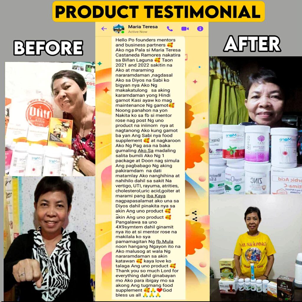 Another amazing story from our Business partner Mam Teresa Ramores From Biñan Laguna 😊Our products are really good, they help a lot. There is no need to spend a lot to be admitted to the Hospital because we have these products, besides being affordable, because my whole family uses these products, I also earn EXTRA. 🤩